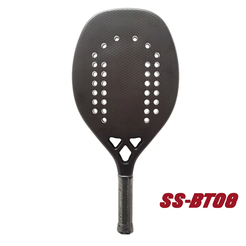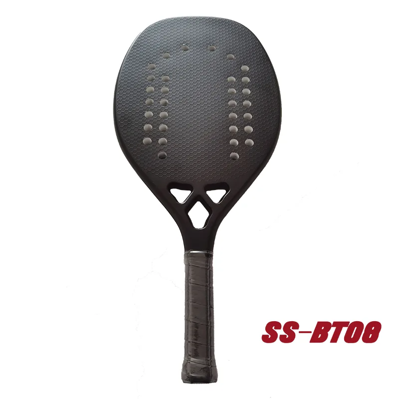 Raket tenis pantai 20mmModel SS-BT08 ialah raket padel karbon penuh. Untuk SS-PR01 standard, bahan muka adalah gentian karbon, bahan bingkai adalah karbon penuh, dan teras memori EVA. Karbon digunakan secara meluas dalam raket padel, karbon bersatu tunggal, dengan regidity yang kuat, lebih tahan lama daripada gentian kaca.